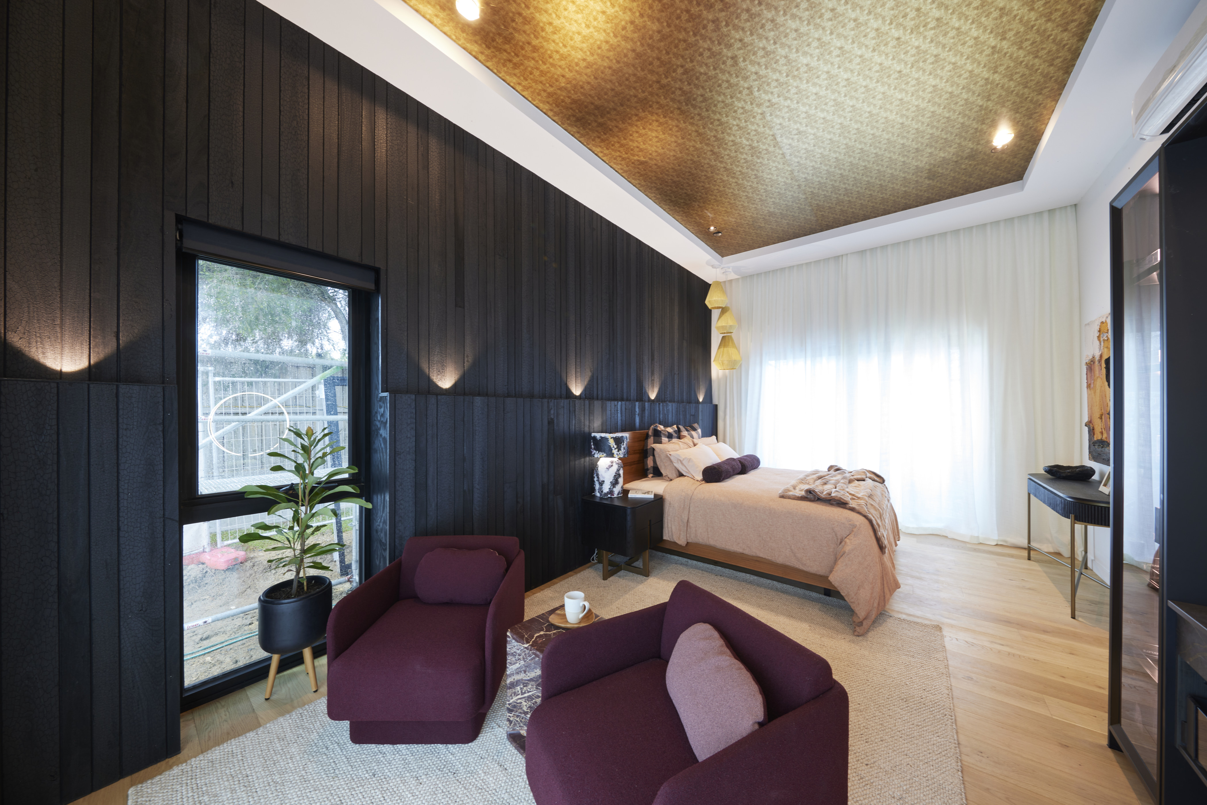 With the judges noting that it was yet another “fantastic effort” by the newlyweds and a “very successful” main bedroom, they did note several functional issues including the positioning of the bedside table lights but did compliment them on their opulent Kinsman walk-in-robe.
