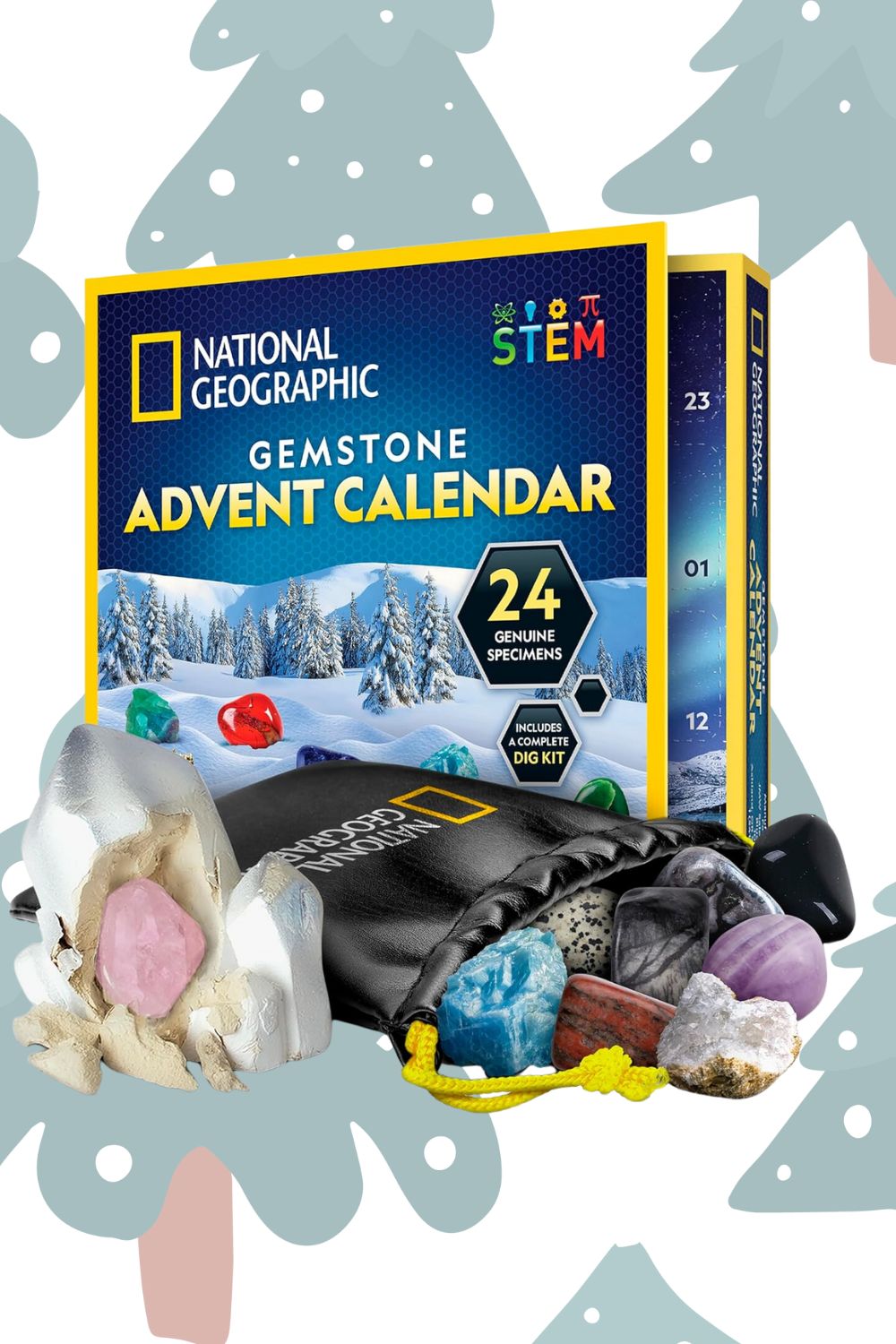 Each day of December, children will have a blast opening a gorgeous new gemstone to add to their collection. The beautiful, polished stones include agate, green aventurine, hematite, sodalite, turquenite, tiger’s eye, blue calcite and more. The final piece is a stunning rose quartz specimen they can unearth from a mini dig brick, just like a real geologist!